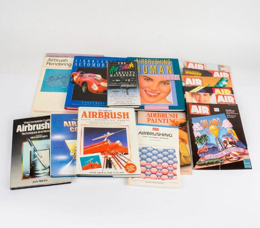 Includes 9 books on how to airbrush, and 6 ‘Airbrush Action’ vintage magazines. Measurements for the tallest book: 10”L x 13.75”H. #Books #ArtBook #Airbrushing