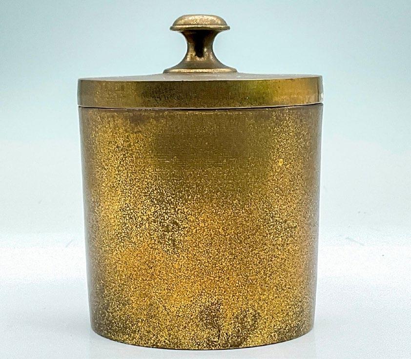 Small cannister with handled lid. ‘India P455 Plain’ engraved on the bottom.
