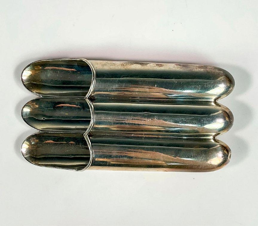 Cigar holder holds 3 cigars. Hallmarked makers mark Hardy Bros Made In England. Weighs: 92 grams.