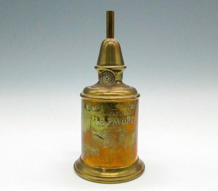 Domestic with twist dial. Front imprinted with Bougeoir A Essence Inexplosible. No burner included. Pigeon Lampe imprint on dial.