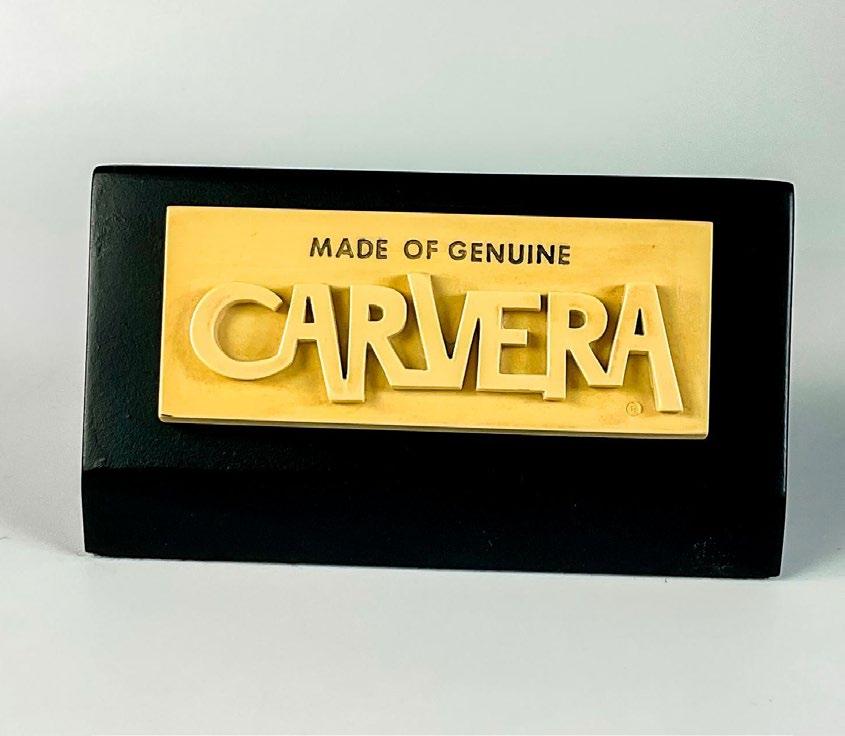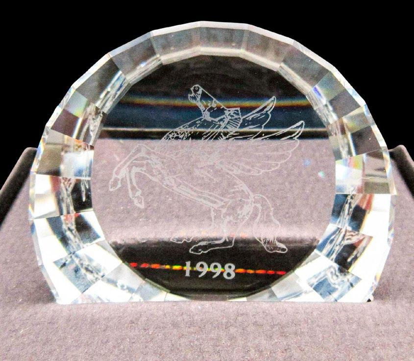 Storey box is made of recycled glass in fan shape with bronze moon face in center. BOMA sticker.