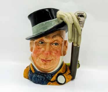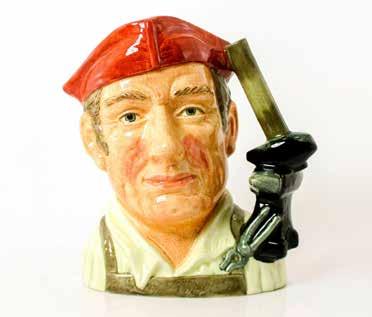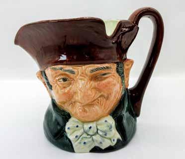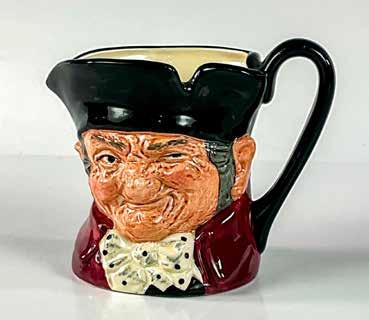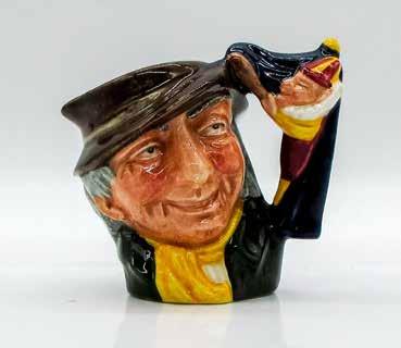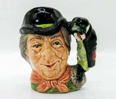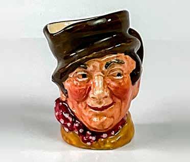 Dark brown hat; light brown coat; red kerchief with white spots. In the 1837 Charles Dickens novel, This character jug is unusual in that its modeling changes dramatically between the large and small versions.Series: Charles Dickens’ Characters. Royal Doulton backstamp.