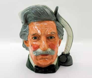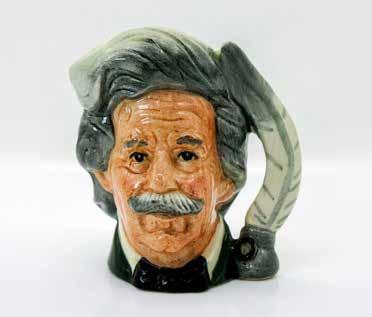 Black coat and bow tie; grey hair. Born Samuel Langhorne Clemens (1835 - 1910), Mark Twain was an American writer and humorist. He was best loved for his classic adventure stories, “ Tom Sawyer” (1876) and “ The Adventures of Huckleberry Finn” (1884), which told of life in his native Mississippi. Royal Doulton backstamp.