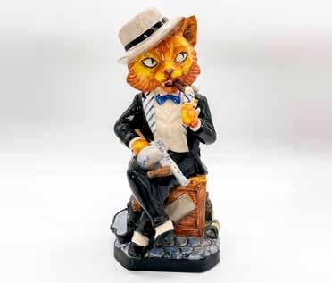 Handmade ceramic parody jug of gangster Al Capone. Features a sitting gangster cat with a gun in hand and tobacco in mouth. Kevin Francis backstamp. This item has its original box. Box measures: 10.5in L x 8in W x 7in H.