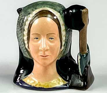Dark blue tam; green cloak. In a poem written by Robert Burns in 1791, Tam O’ Shanter is a drunken farmer who happens upon witches who pursue him and his horse. He escapes, but his horse doesnt quite make it - one witch pulls its tail off. The Scottish woolen cap is reputedly named after this poem’s hero.Royal Doulton backstamp.