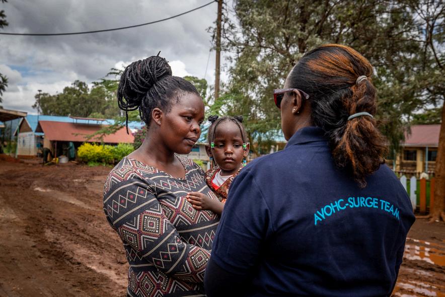 In Mai Mahiu, displaced families stayed at schools Image captures WHO-trained rapid responder monitoring water sanitation and hygiene to prevent further health emergencies, such as a cholera outbreak