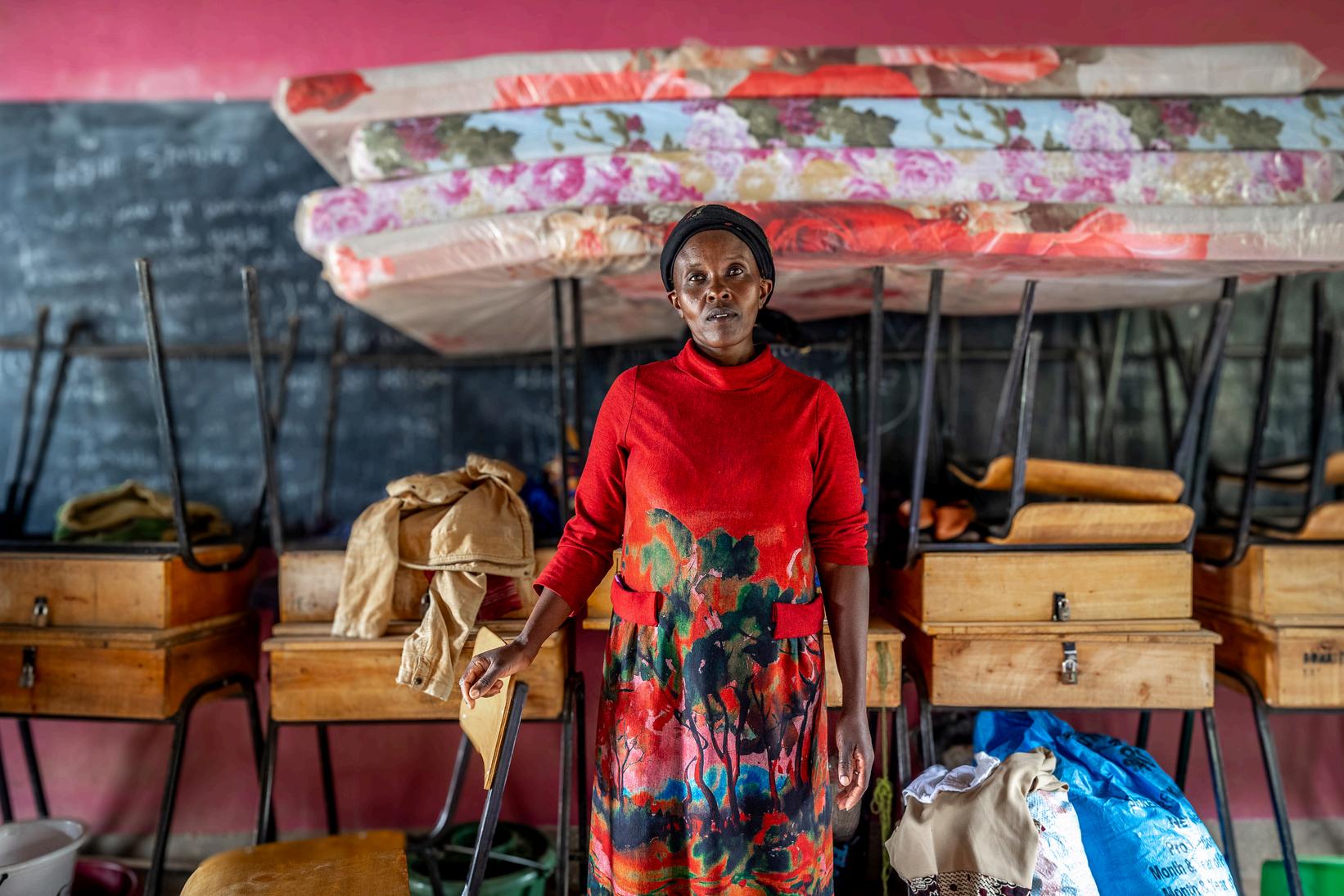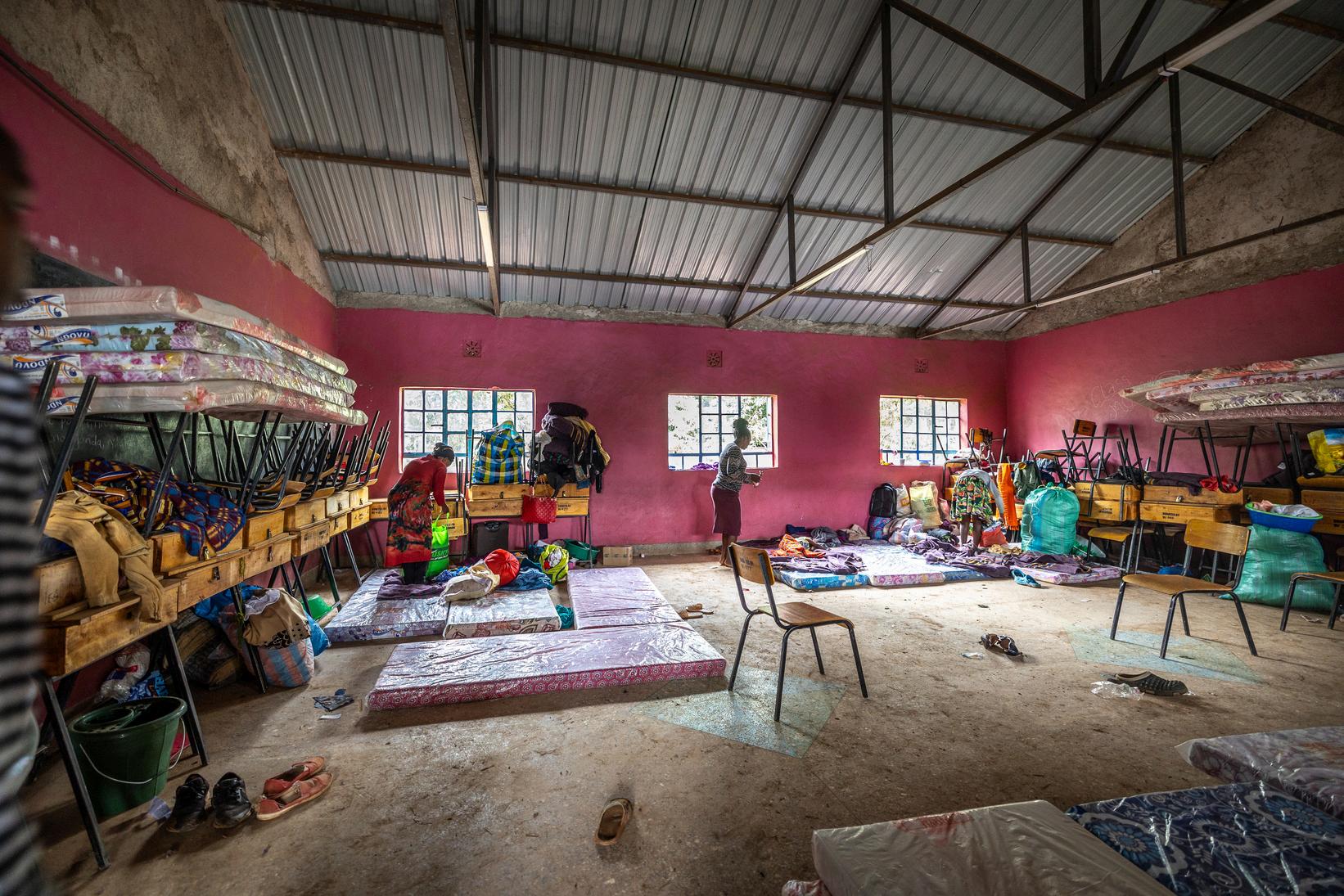 Displaced families in Mai Mahiu were housed in a local school, where they slept in classrooms, with men and women accommodated separately.