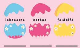 Unscramble the letters to find the missing words. Then match the eggs by colour.
