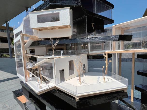 外在的量體柔和地介入原本的主體,像 滲透進去般,不同性質相互纏繞、呼 應。我想在我的建築上也運用這種滲透 手法,讓建築能夠溫和地安置於地形。