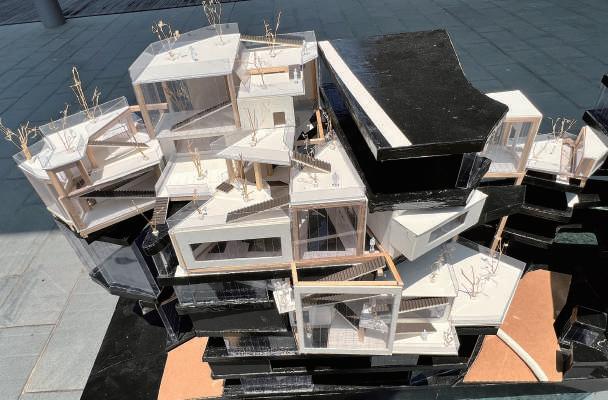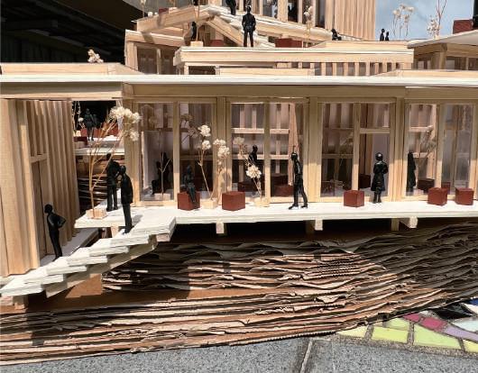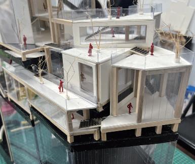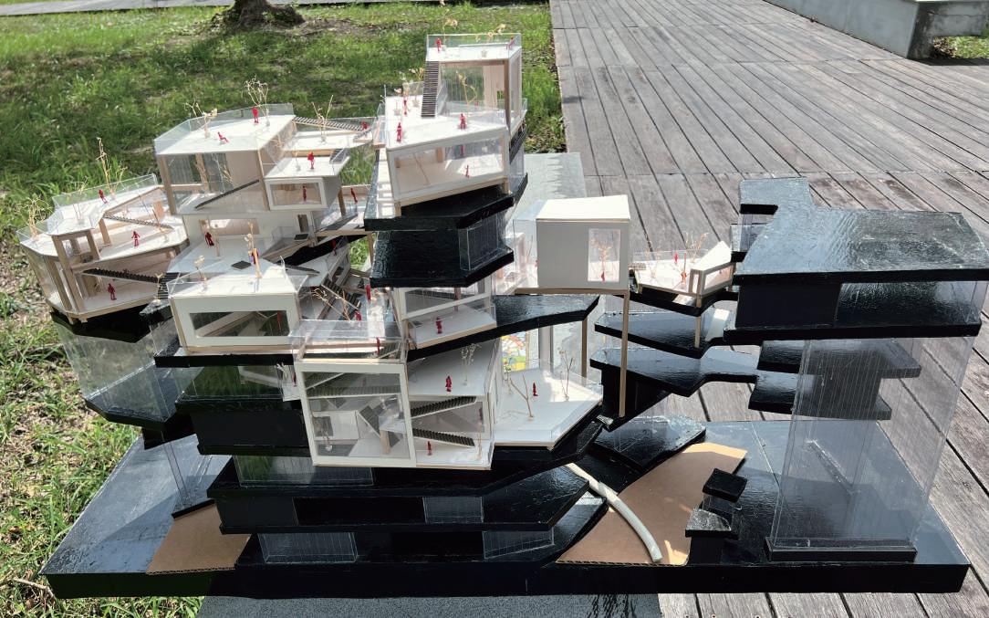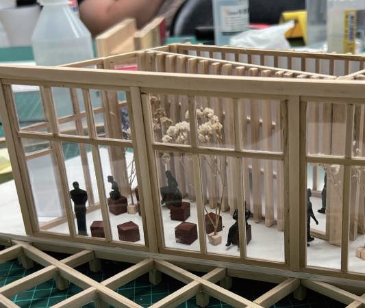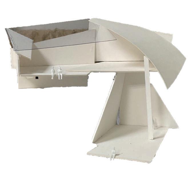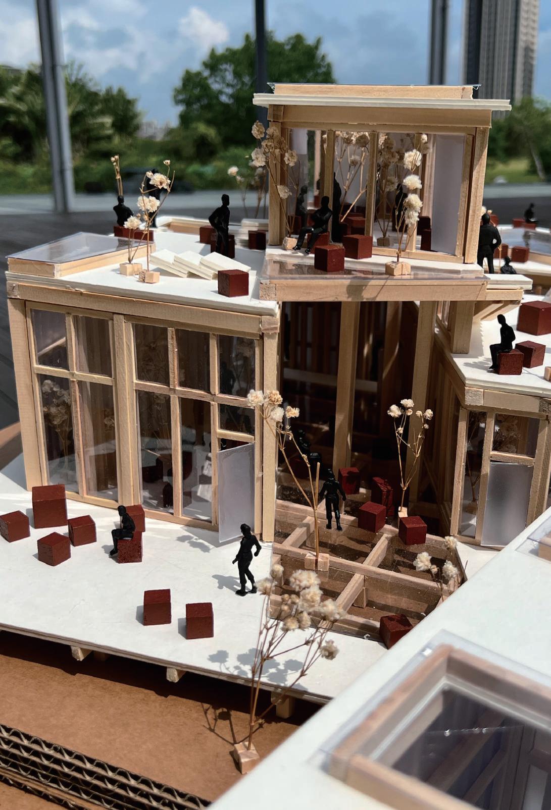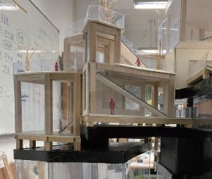 選取關鍵或具代表性的局部空間,連通相連部分之基地形式, 重新放大比例製作模型,創造出具有生命力的活動場景 針對前一階段的作品,對空間的計畫及型態有更清楚具體的回 應,並開始清楚檢視空間的合理性、基本的動線規劃、使用著 將體驗的空間情景等