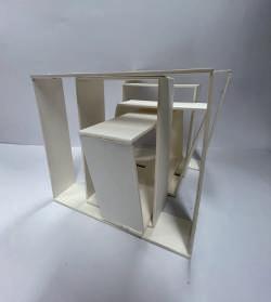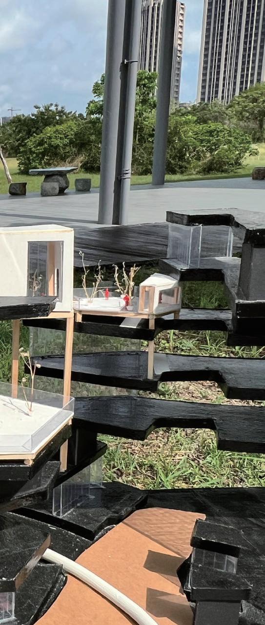 在基地立體化的過程中,探討形式轉換的秩序 與邏輯關係,並探索立體構成的空間美感如何 形成,追求創作的獨特性與極致性