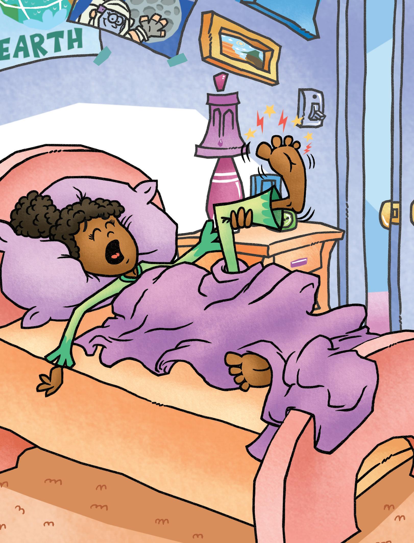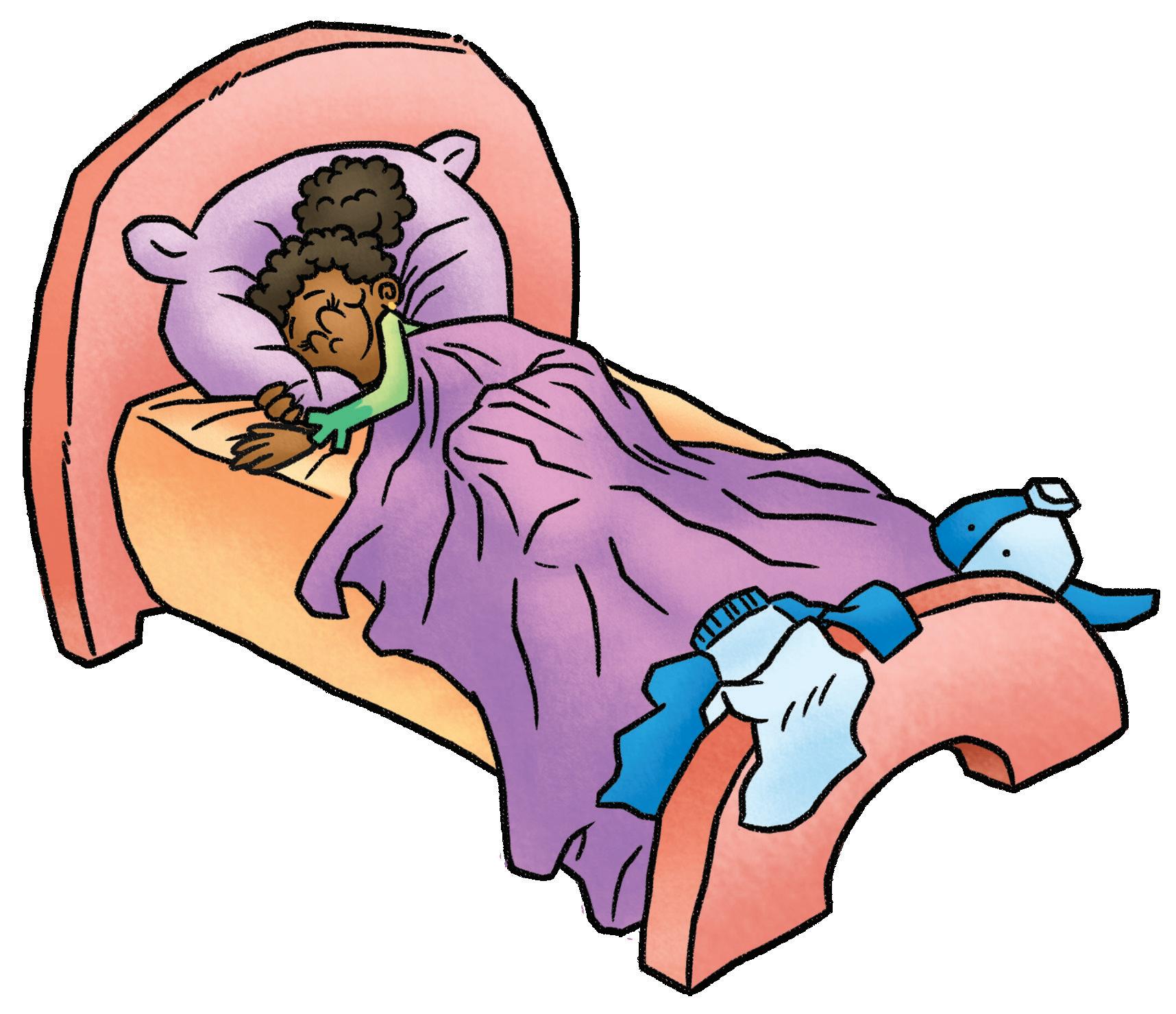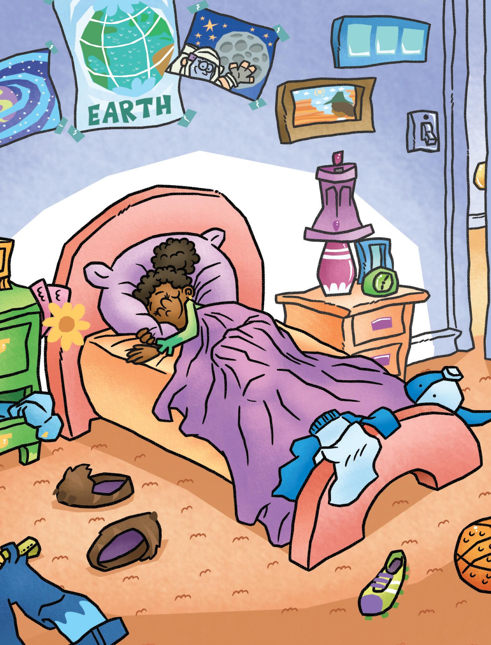 Meg tells Mom, “Not yet. I love my bed.”