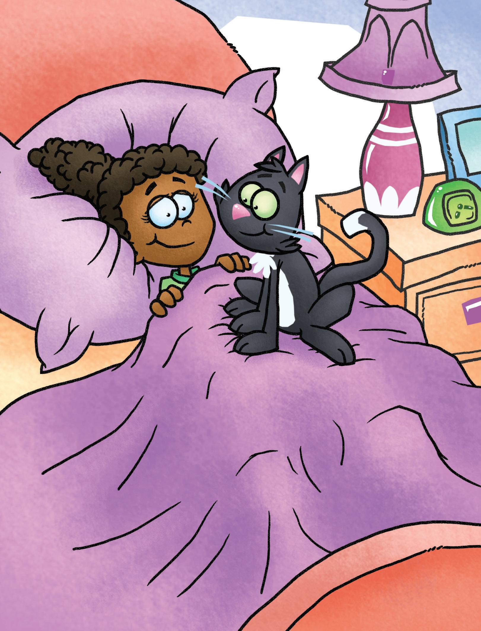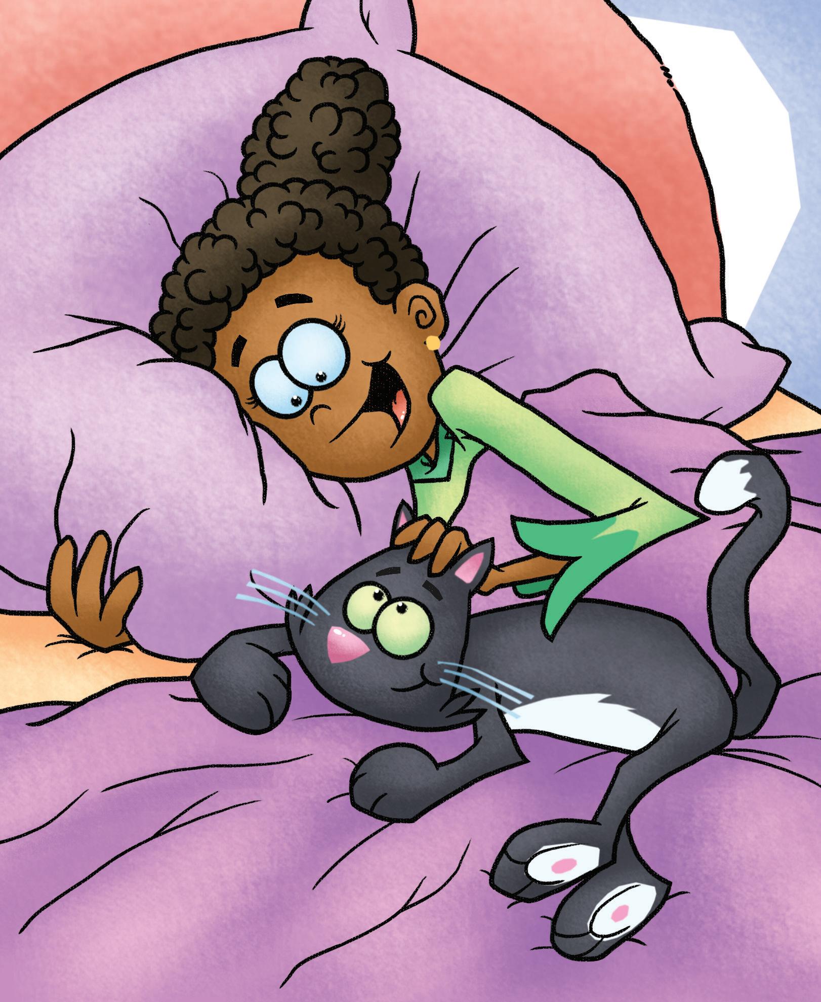 Summary: Meg does not want to get out of her cozy bed to feed her cat, but the cat is hungry. What will Meg do?