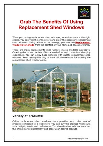 Online replacement shed windows store provides vast collections of products compared to a local store. You can buy the product which suits your budget, needs, and preferences. You should collect information about the online store’s authenticity and order your desired product.