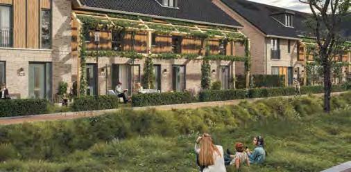 De woningen zijn omgeven door groen, waarbij de binnen- en buitenruimte nauw met elkaar verbonden zijn. Bijvoorbeeld in de veranda’s en groene pergola’s in de voortuinen, maar ook in de openslaande tuindeuren aan de voorzijde van de woningen. De kinderen rennen na het buitenspelen dus niet via de voordeur naar binnen, maar hebben direct toegang via deze dubbele deuren. En voor de ouders is het net zo goed toeven op het terras aan de voorzijde van de woning als in de meer beschutte achtertuin.