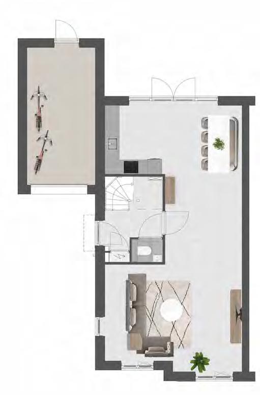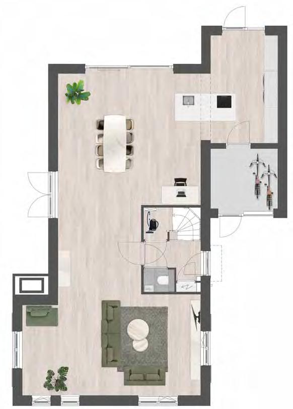 Dit Leef-magazine is bedoeld om de sfeer en de mogelijkheden van dit project te laten zien. De in dit Leef-magazine aangegeven keuken, huishoudelijke apparaten en inrichting c.q. aankleding geven een impressie van de mogelijkheden en behoren niet tot de standaard uitrusting van de woning. De juiste positie van elektra/schakelmateriaal, rookmelders, afzuigpunten t.b.v. ventilatie e.d. staan op de verkooptekeningen vermeld en zijn niet in de plattegronden opgenomen. Aan de beelden, illustraties, plattegronden en teksten in dit Leef-magazine kunnen geen rechten ontleend worden.