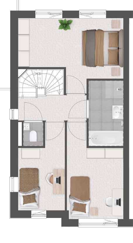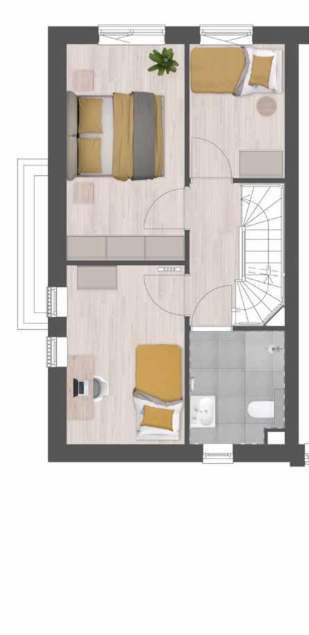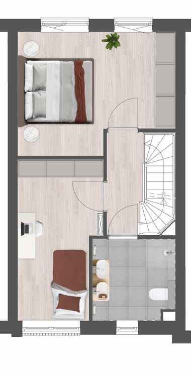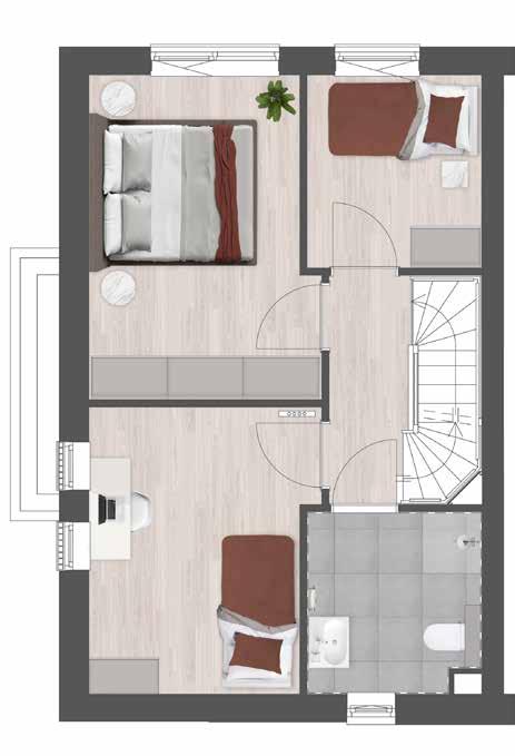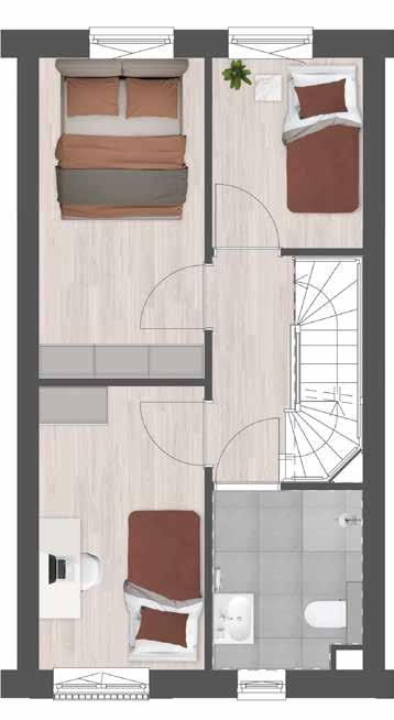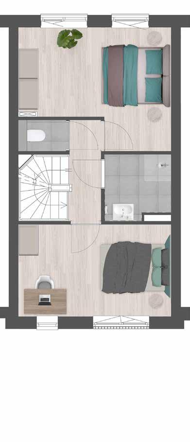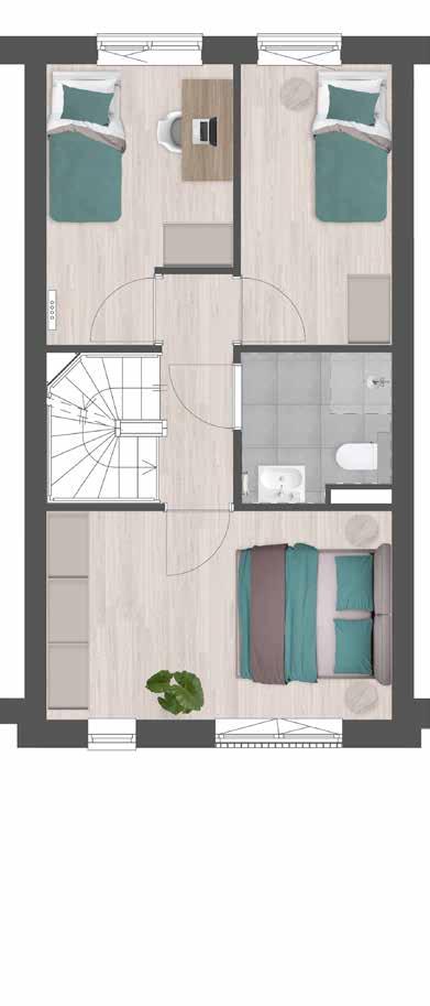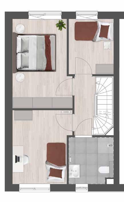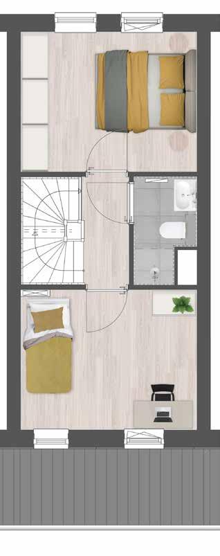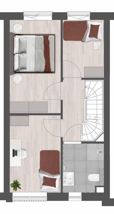 Standaard 3 (slaap)kamers en badkamer op de verdieping