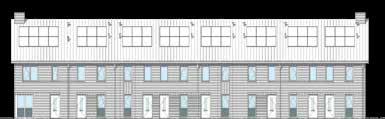 De rijwoningen in de woonstraten om de hoek hebben een sterke gevelritmiek. Hier wordt eenzelfde kleurstelling toegepast als bij de tweekappers: donkere kozijnen, rode baksteen voor het hoofdvolume in combinatie met witte accenten en een donkere dakpan. Deze witte accenten komen terug als reliëf metselwerk, penanten tussen de ramen en in de omkadering van de verticale elementen. Dit zorgt voor een afwisselend en eigentijds beeld. In de gevelcompositie is de lengte van het blok doorbroken door de verticale accenten in de vorm van een omkadering van de ramen van boven naar beneden. Op deze manier ontstaat binnen het blok een kleinere schaal. Het blok wordt als het ware onderverdeeld waardoor er variatie en afwisseling in de gevel ontstaat en het kleinschalige karakter behouden blijft. De frisse witte accenten zorgen voor een levendige gevel. Op deze manier hebben we voor deze nieuwe fase verschillende clusters met woningen ontworpen, die elk hun eigen herkenbare uitstraling en sfeer hebben. Een traditionele baksteen architectuur, maar wel met een eigentijdse accenten, kleurstelling en materiaalgebruik. Het geheel sluit mooi aan bij het sfeer van de rest van de wijk en het dorpse karakter van Geffen.”