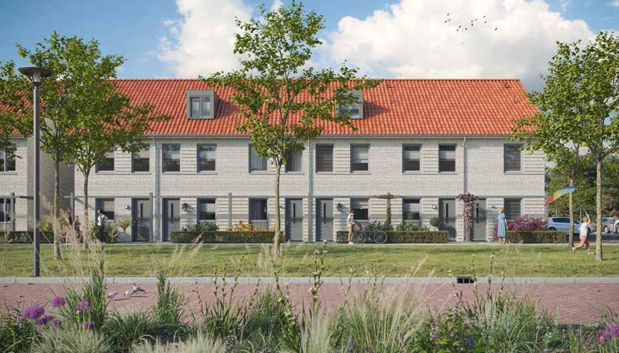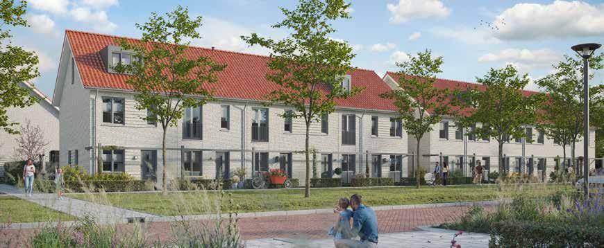 Aan de voorzijde van elke woning is een zichtlijn naar deze groene ruimte of richting het buitengebied.