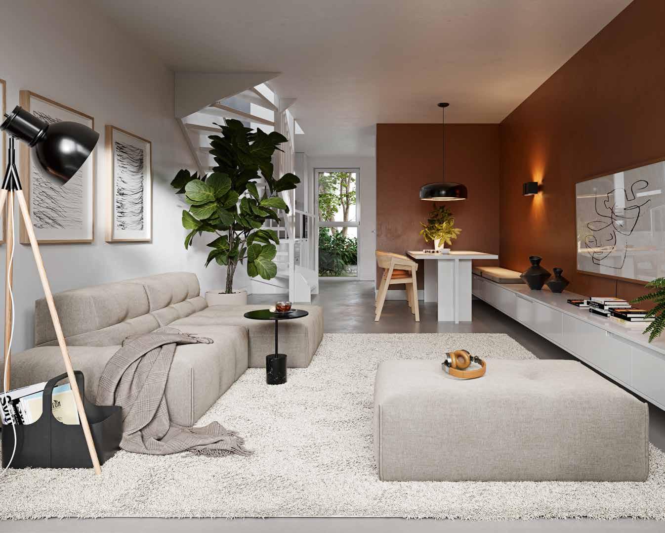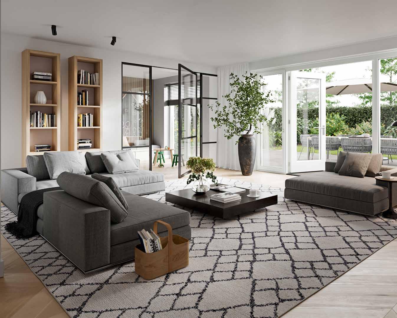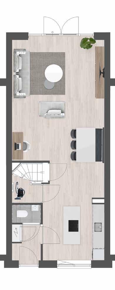 Dit Woon!magazine is bedoeld om de sfeer en de mogelijkheden van dit project te laten zien. De in dit Woon!magazine aangegeven keuken, huishoudelijke apparaten en inrichting c.q. aankleding geven een impressie van de mogelijkheden en behoren niet tot de standaard uitrusting van de woning. De juiste positie van elektra/schakelmateriaal, rookmelders, afzuigpunten t.b.v. ventilatie e.d. staan op de verkooptekeningen vermeld en zijn niet in de plattegronden opgenomen. Aan de beelden, illustraties, plattegronden en teksten in dit Woon!magazine kunnen geen rechten ontleend worden.