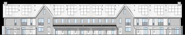 De doorlopende banden met staand metselwerk, de franse balkons en de verspringende ritmiek van ramen en houtaccenten geven deze woningen een eigentijds karakter.