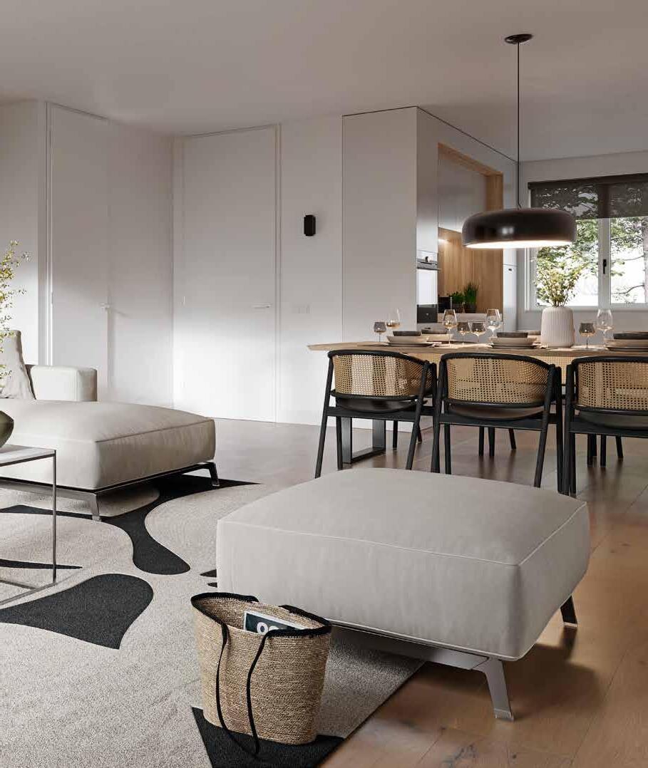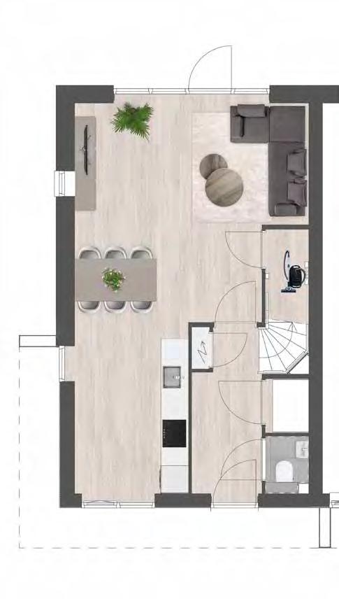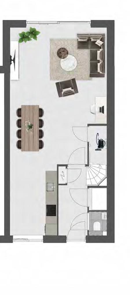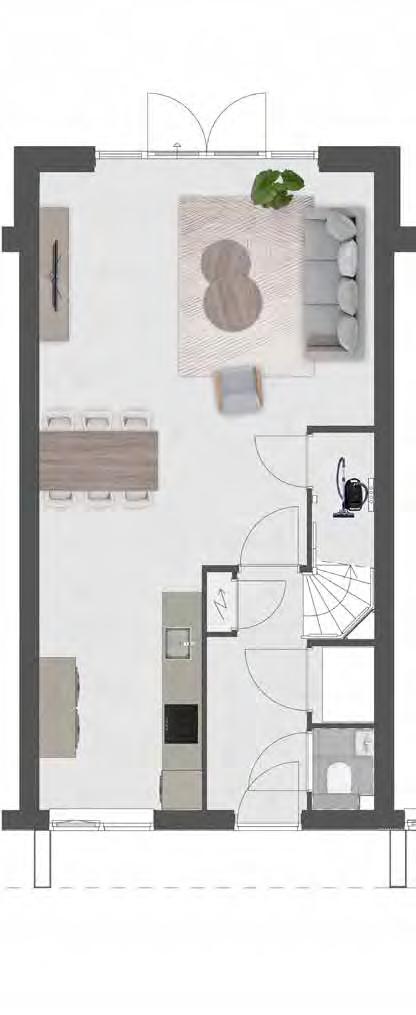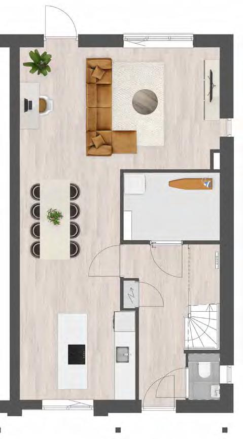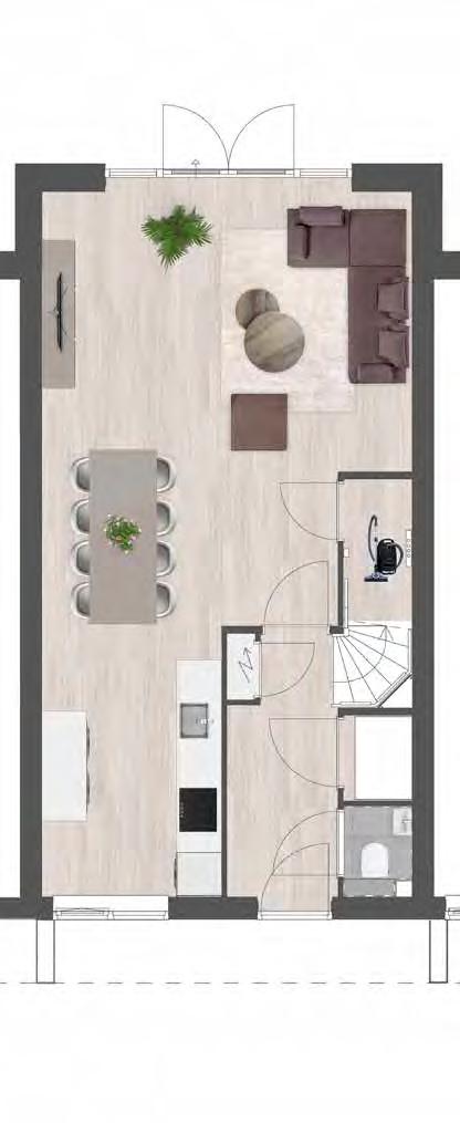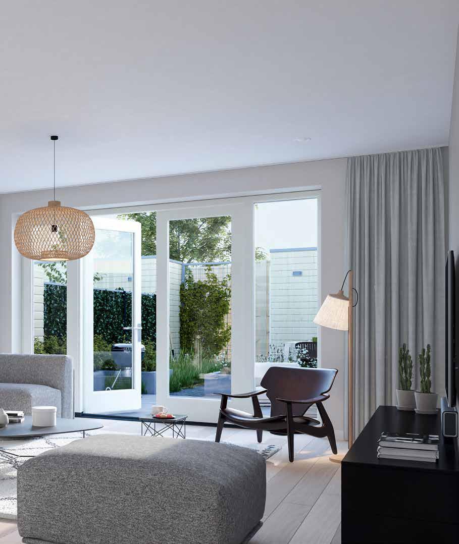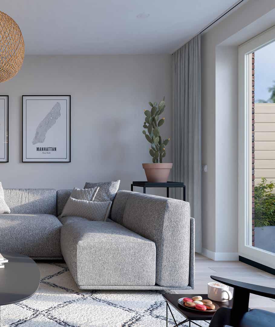 Dit Leef-magazine is bedoeld om de sfeer en de mogelijkheden van dit project te laten zien. De in dit Leef-magazine aangegeven keuken, huishoudelijke apparaten en inrichting c.q. aankleding geven een impressie van de mogelijkheden en behoren niet tot de standaard uitrusting van de woning. De juiste positie van elektra/schakelmateriaal, rookmelders, afzuigpunten t.b.v. ventilatie e.d. staan op de verkooptekeningen vermeld en zijn niet in de plattegronden opgenomen. Aan de beelden, illustraties, plattegronden en teksten in dit Leef-magazine kunnen geen rechten ontleend worden.