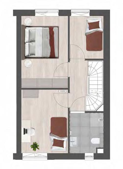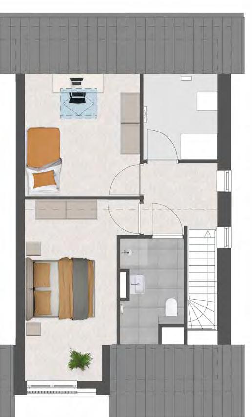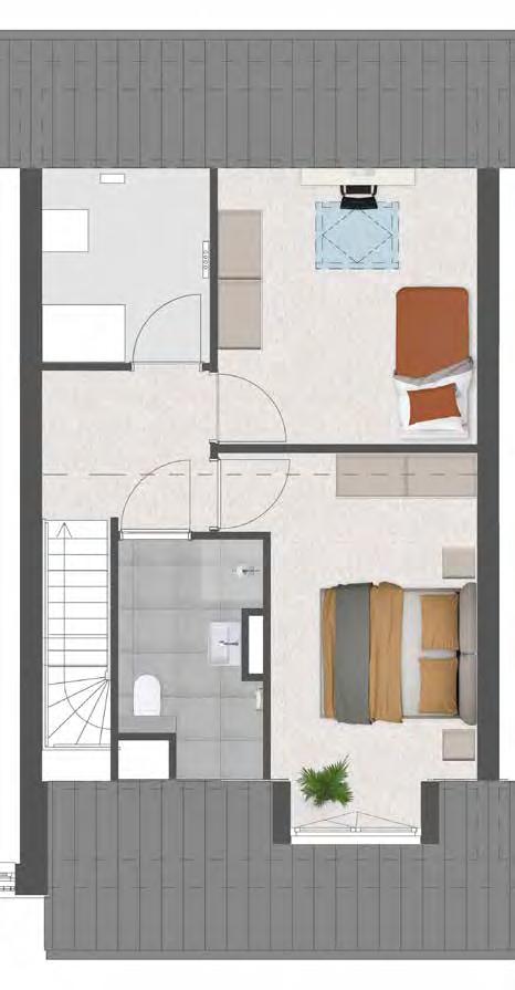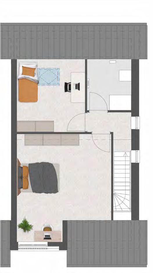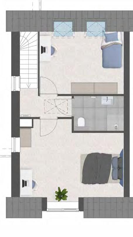 • Standaard dakopbouw aan voorzijde, 2 dakramen aan achterzijde en 2 ramen in zijgevel
