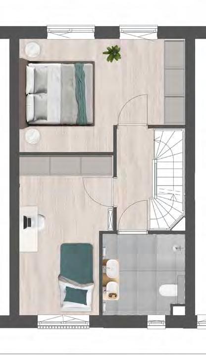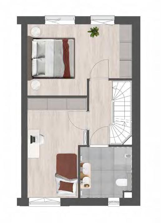 • Indeling met standaard overloop, 2 (slaap)kamers en bergruimte