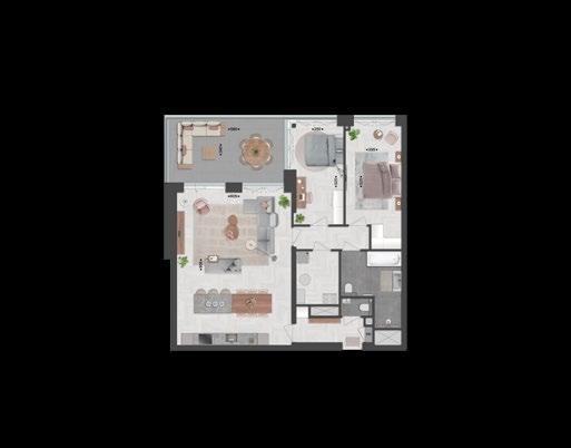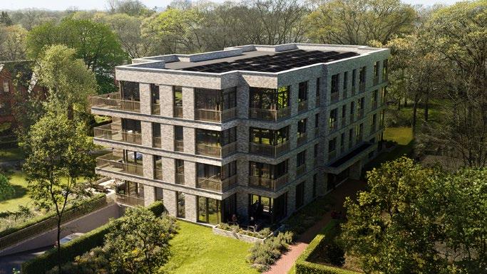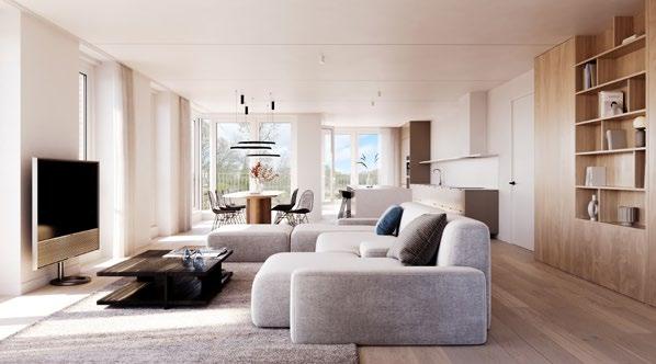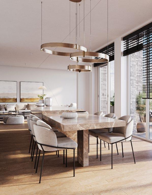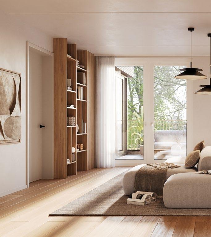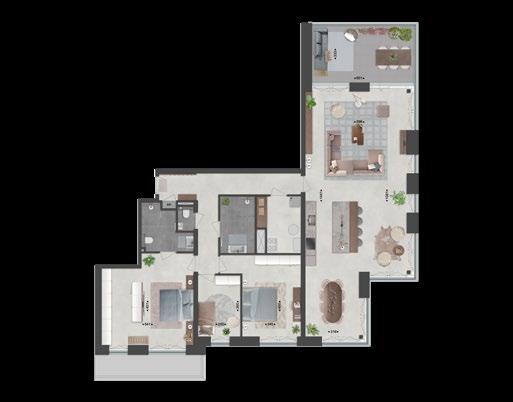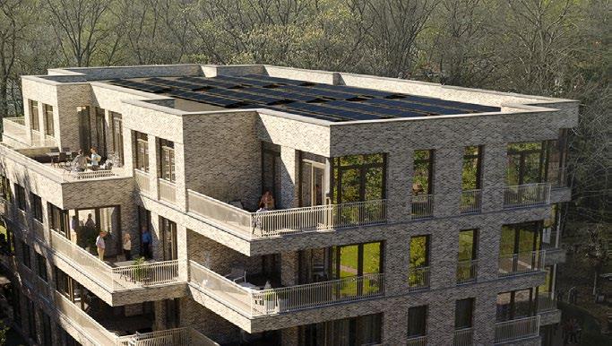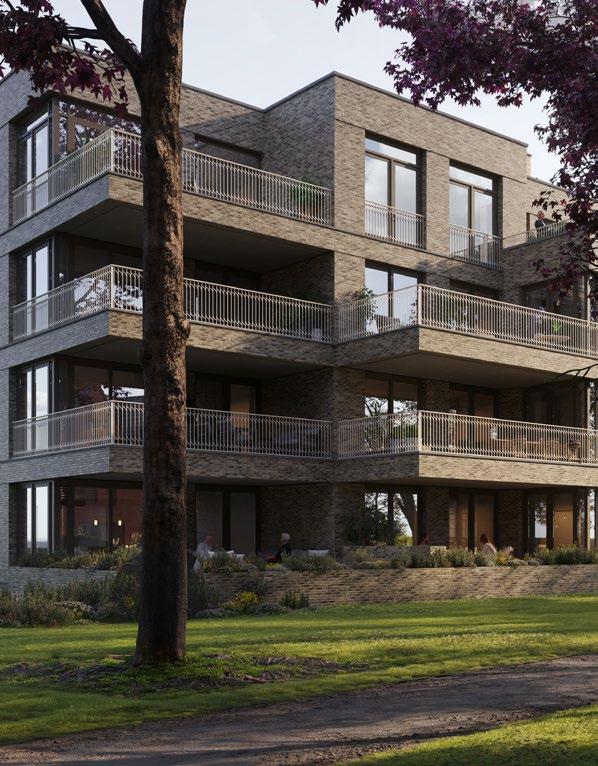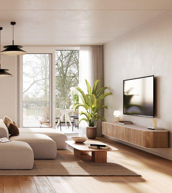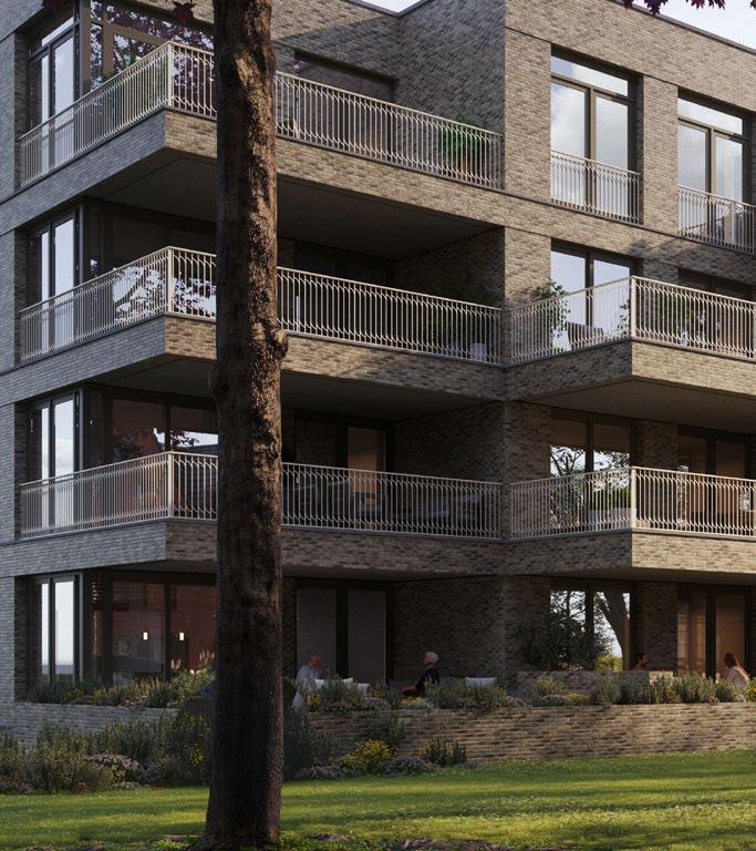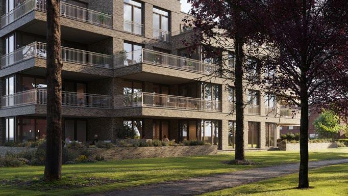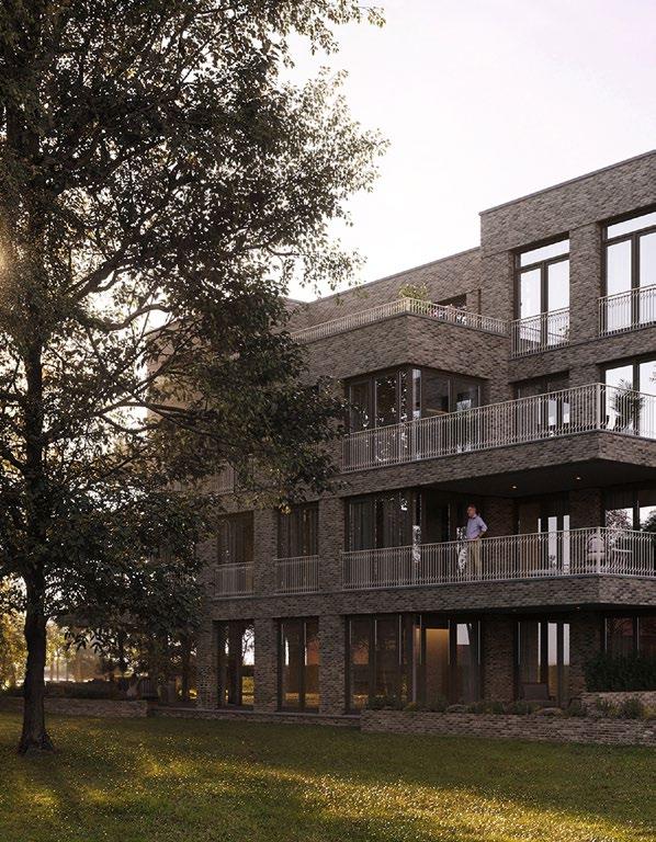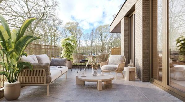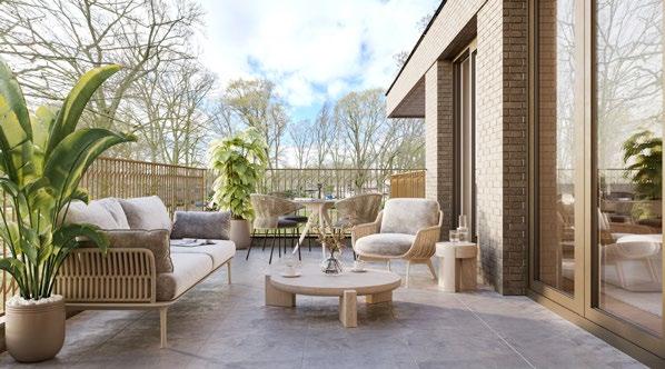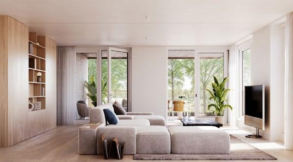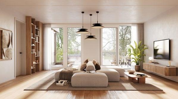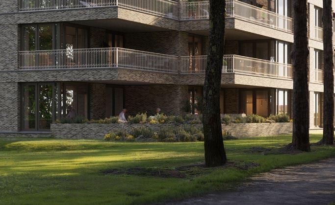 In de woningen zorgen verdiepingshoge ramen ervoor dat binnen en buiten naadloos in elkaar over gaan. Op de hoeken bevinden zich de ruime woonkamers met genereuze balkons die zich uitstrekken in het landschap. Op de begane grond hebben de woningen grote terrassen met bloembakken rondom. Doordat het terras een paar tredes hoger ligt dan het omliggende landschap, geniet je hier tegelijkertijd van uitzicht en privacy.