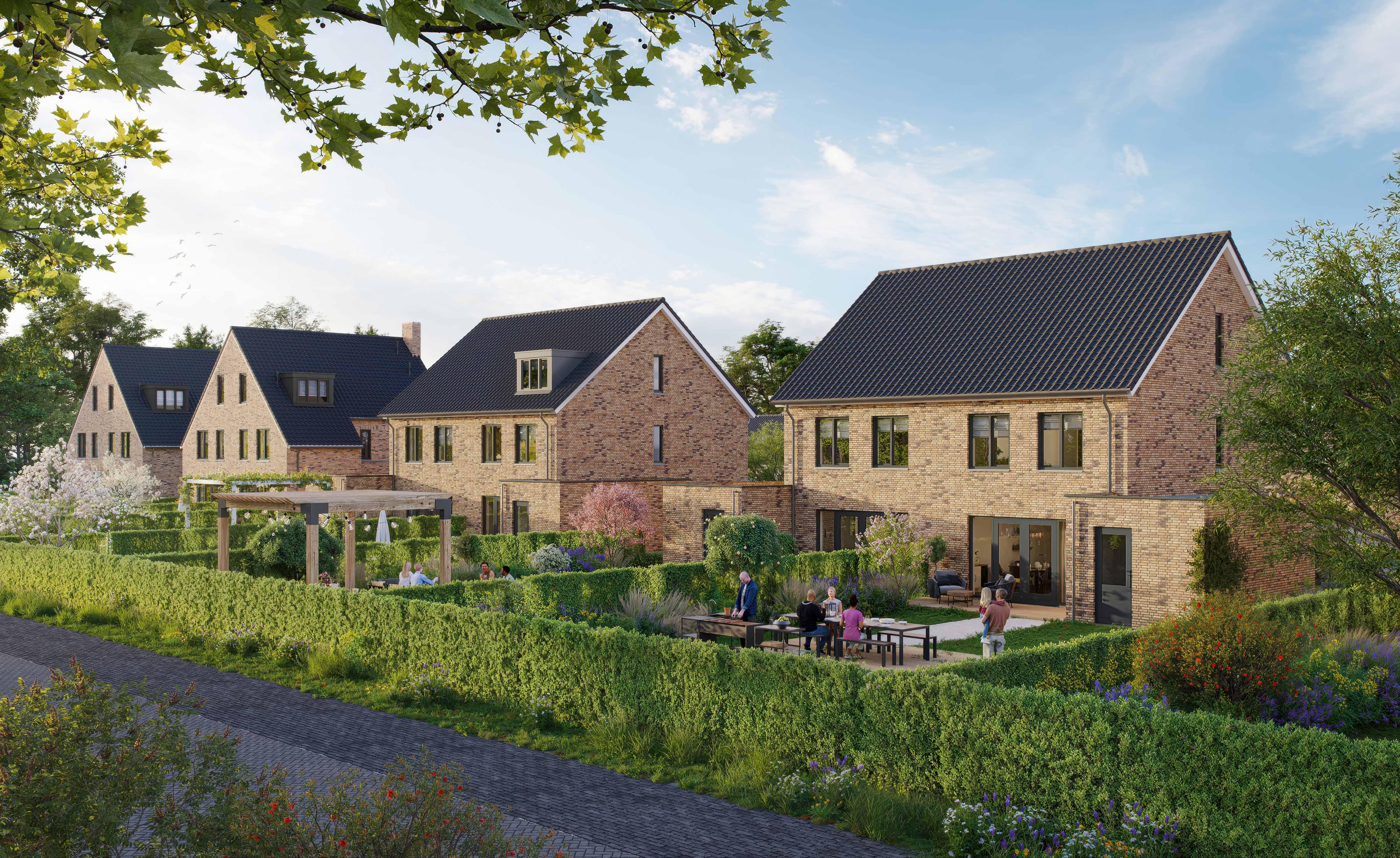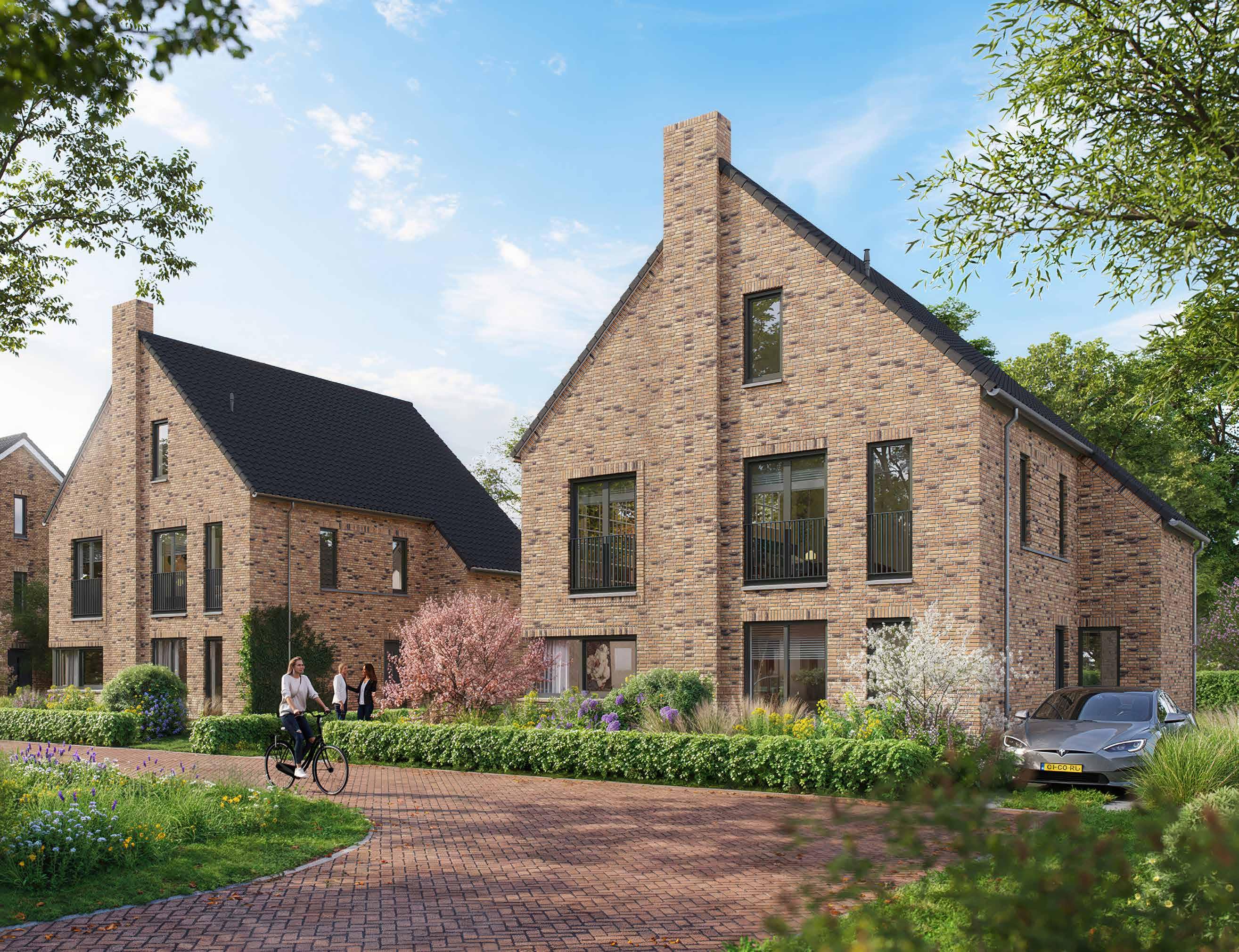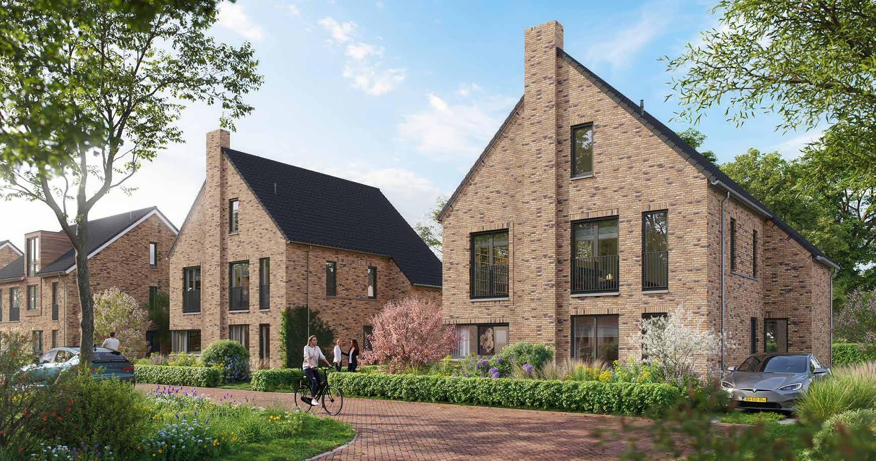 De architectuur ademt rust en samenhang. Alle woonblokken worden uitgevoerd in metselwerk met lichte, aardse tinten en hebben een antracietkleurig pannendak met overstek. Subtiele variaties in metselwerk, pergola’s, erkers en dakkapellen zorgen voor afwisseling en een dorps karakter.
