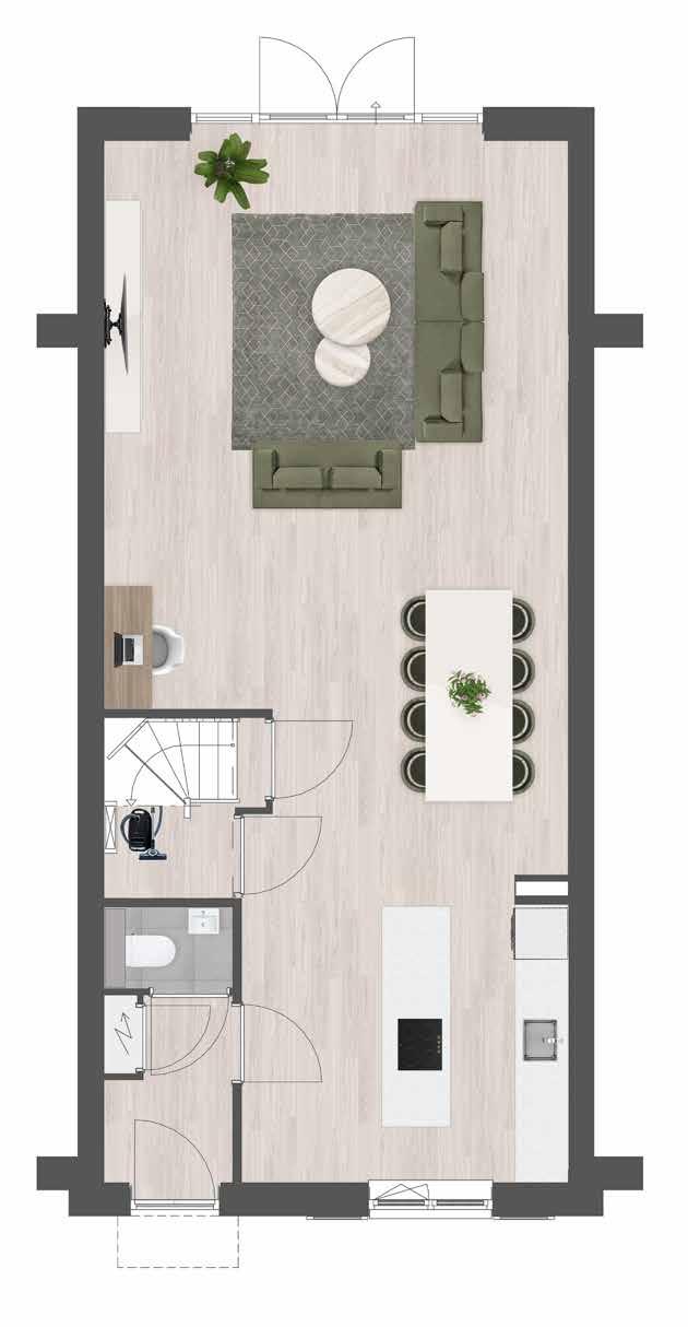 Dit Woon-magazine is bedoeld om de sfeer en de mogelijkheden van dit project te laten zien. De in dit Woon-magazine aangegeven keuken, huishoudelijke apparaten en inrichting c.q. aankleding geven een impressie van de mogelijkheden en behoren niet tot de standaard uitrusting van de woning. De juiste positie van elektra/schakelmateriaal, rookmelders, afzuigpunten t.b.v. ventilatie e.d. staan op de verkooptekeningen vermeld en zijn niet in de plattegronden opgenomen. Aan de beelden, illustraties, plattegronden en teksten in dit Woon-magazine kunnen geen rechten ontleend worden.