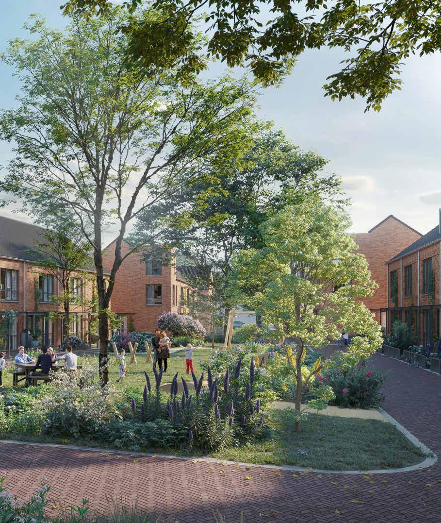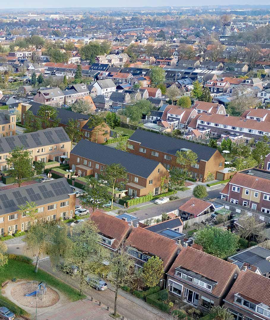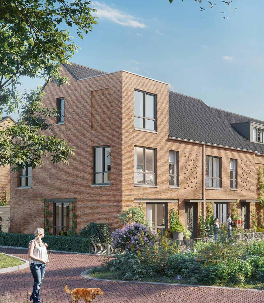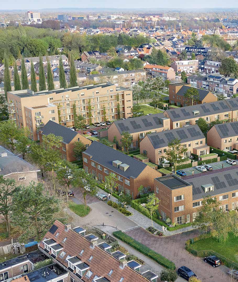 groene wijk waar de menselijke maat voorop staat. Je profiteert hier dus van de persoonlijke en sociale voordelen van een ‘dorps’ karakter. Voorzieningen, zoals een supermarkt, het station en sportvelden bevinden zich op fietsafstand. Bij de stedenbouwkundige invulling van het gebied is rekening gehouden met de voorkeuren van de toekomstige bewoners. Gezondheid, duurzaamheid en veiligheid staan hierin voorop. Het nieuwe deel sluit aan bij de bestaande padenstructuur, met aan fietsroute van de Rozenstraat naar de Narcisstraat en autovrije paden. De meeste parkeerplaatsen komen uit het zicht, achter de woningen. Zo is het mogelijk in de buurt van de woning te parkeren terwijl het straatbeeld niet door auto’s wordt bepaald.