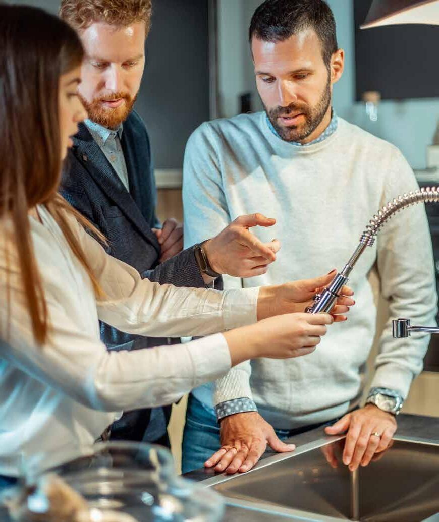 In de showroom loop je virtueel door je nieuwe keuken en badkamer. Een unieke beleving! Zo ervaar je of de ruimte helemaal naar wens is. Heb je wel voldoende loopruimte? Bevinden alle apparaten zich wel binnen handbereik? Is de werkhoogte wel goed? Kom het zelf testen in de showroom.