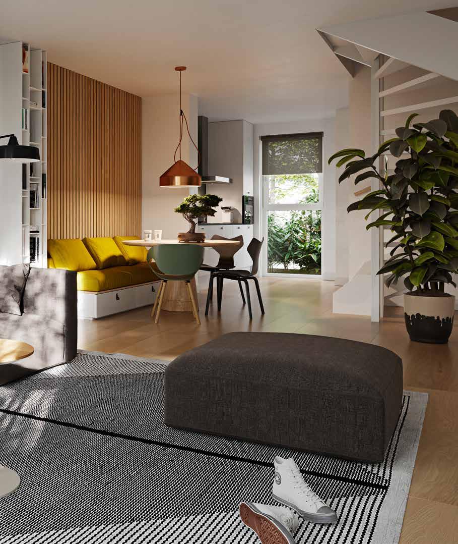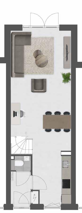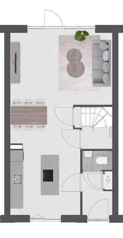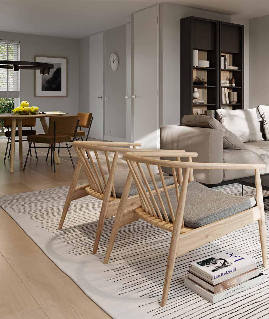 Dit Leef-magazine is bedoeld om de sfeer en de mogelijkheden van dit project te laten zien. De in dit Leef-magazine aangegeven keuken, huishoudelijke apparaten en inrichting c.q. aankleding geven een impressie van de mogelijkheden en behoren niet tot de standaard uitrusting van de woning. De juiste positie van elektra/schakelmateriaal, rookmelders, afzuigpunten t.b.v. ventilatie e.d. staan op de verkooptekeningen vermeld en zijn niet in de plattegronden opgenomen. Aan de beelden, illustraties, plattegronden en teksten in dit Leef-magazine kunnen geen rechten ontleend worden.