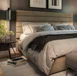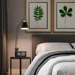 Voor de inloopdouche hadden Emily en Puru voorkeur voor een industrieel ogende douchewand. De master bedroom is nog een ‘project voor de toekomst’, zegt Emily. Nu volstaan ze hier voorlopig met een box-spring en gordijnen in dezelfde kleur. Ook voor de zolder zijn er toekomstplannen (een dakkapel).