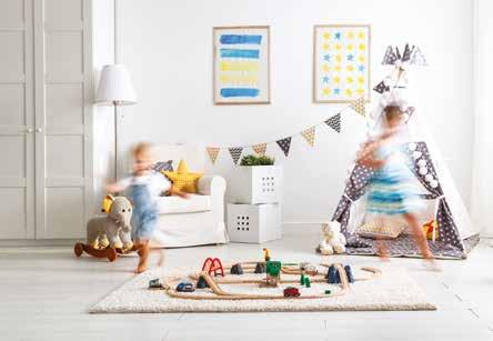 “Dankzij het behang van Pimpelmees en de accessoires van Jollein wordt hij al een echte dierenvriend”, lacht Emily. Terracotta is de overheersende kleurtint en dat geeft rust.