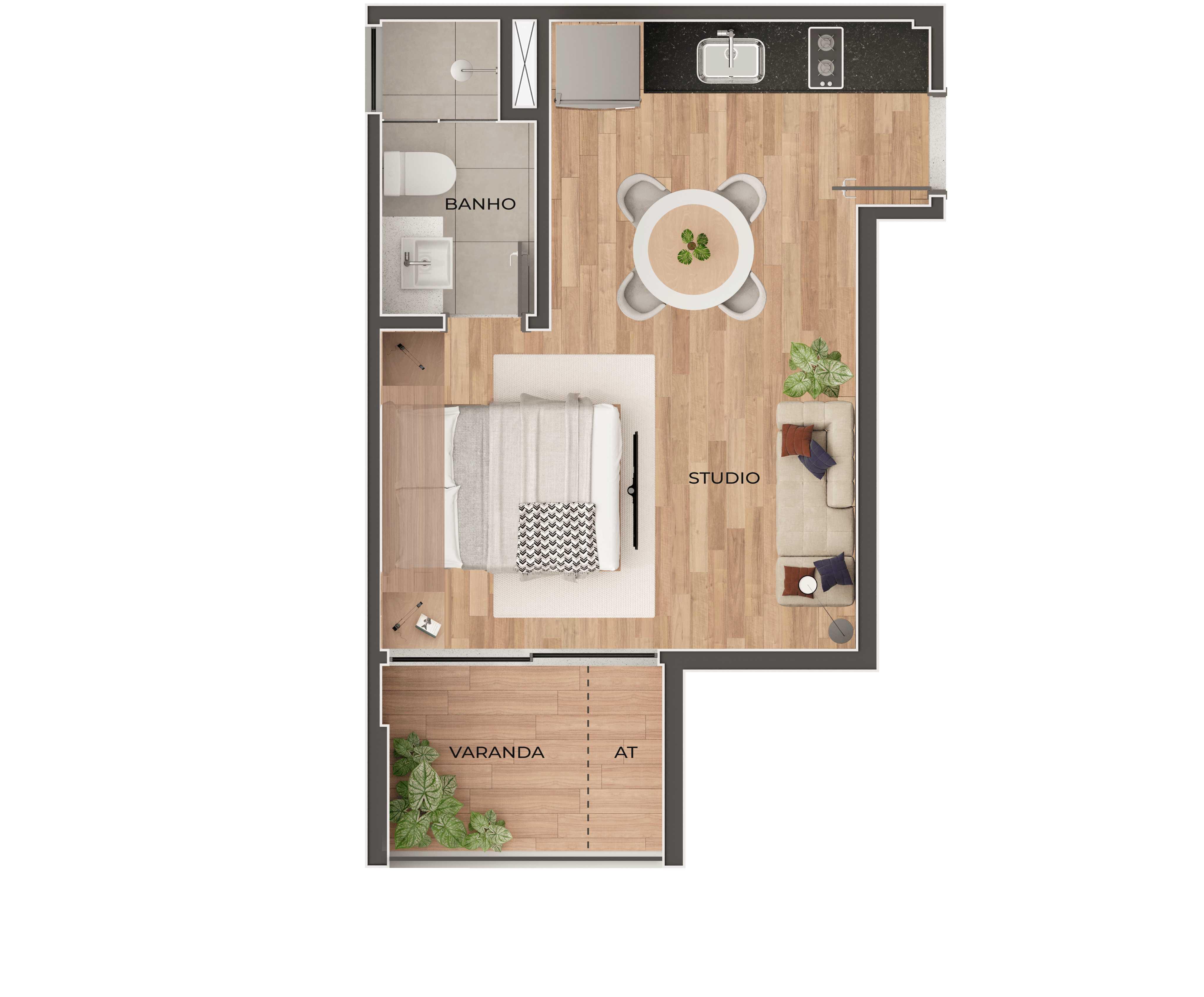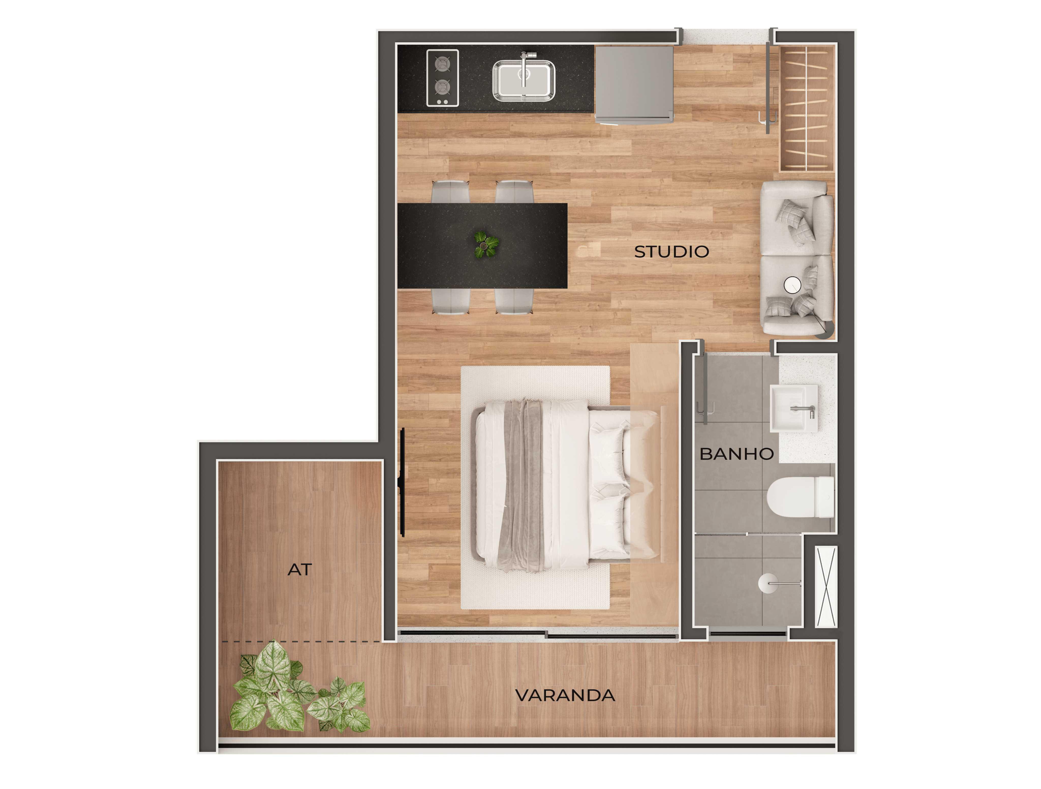 Os móveis e itens decorativos apresentados nas plantas são sugestivos e meramente ilustrativos, não são entregues com a unidade.