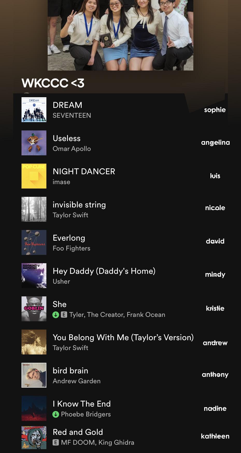 In preparation of Westminster Key Club's upcoming banquet, Spotterfy Wrapped, on May 21st, here are some of our board's favorite songs!