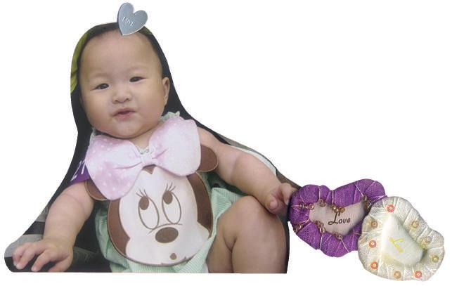 家妤寶貝 爸比:葉日超 媽咪:陳玉惠 寶貝:葉家妤 年齡:6個月 To我最愛的寶貝: 如果,老天願送我一個24小時,可以什麼都不管 做我想做的事,那我想要什麼也不做,就靜靜守 在你身邊,陪你,看你⋯⋯ 喜歡看你總是開心的樣子無論再累都會變成無所 謂看你翻看你滾看你假哭愛騙人,看你躺在推車 上,腳勾著把手就想坐著,看你洗澡玩水,噴的 眼睛打不開但依然開心哈哈笑,喜歡親親你的小 臉喜歡咬咬你的小腳,喜歡抱著你聽你說那我聽 不懂的話⋯⋯看你一點一點長大,期待你爬,期 待你走期待你開口叫媽咪期待你上學⋯⋯期待和 你一起走過成長的一切一切,怕你哭怕你冷怕你 熱,怕你受傷⋯寶貝!!媽咪發現,自己愈來愈 愛你了⋯答應我哦!!你一定要健康長大⋯⋯ Love You PS:如果有一天,你要嫁人了⋯我該怎麼辦⋯嗚 嗚嗚⋯ 心肝寶貝 / LOVE STORY 029