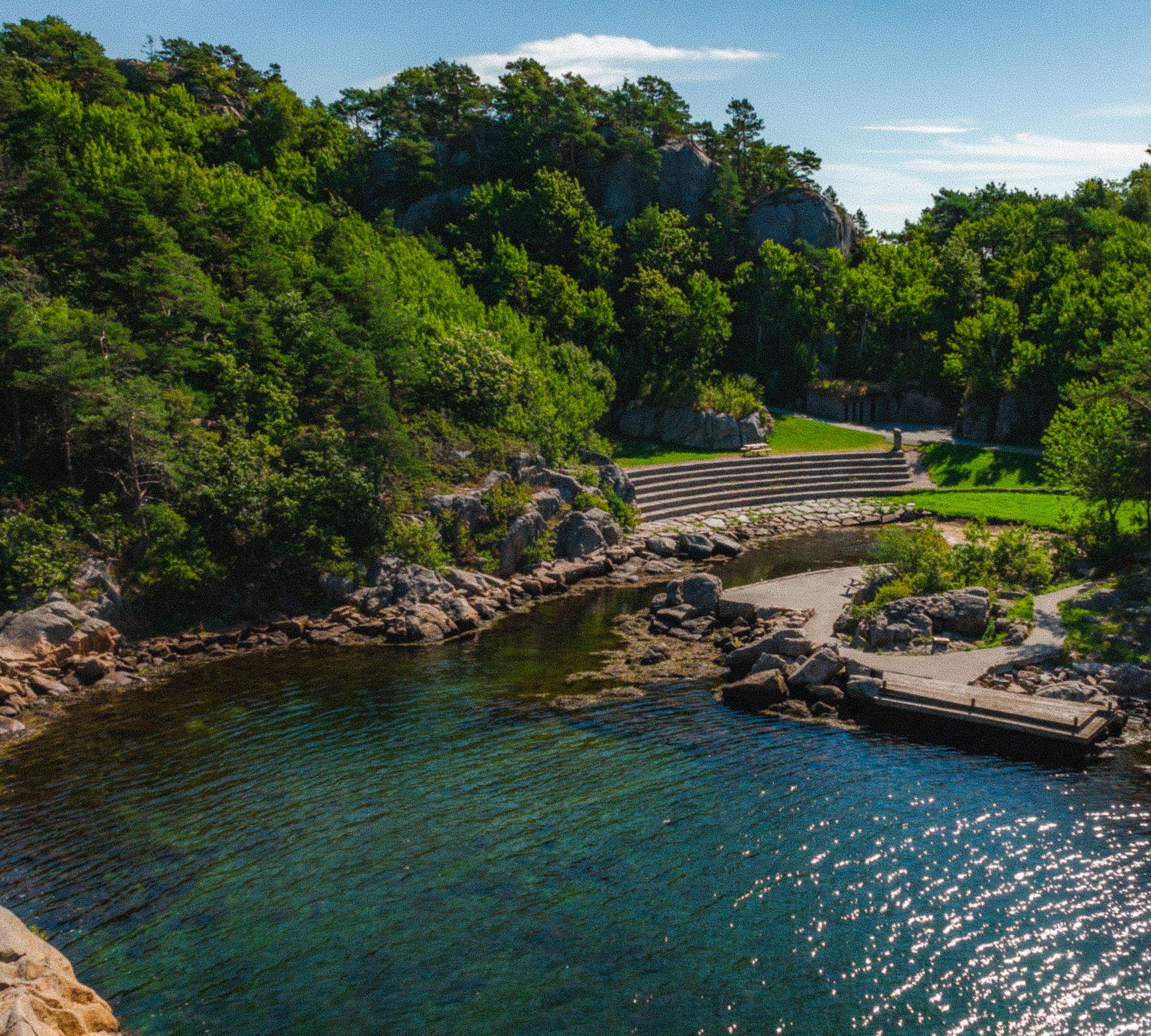I tillegg til alt dette, er du en liten spasertur unna naturskjønne Ulvsvika - en lagune med strand, gresslette og et eget amfi til forestillinger. Her kan også de ivrigste klatrerne bryne seg på en klatrevegg direkte opp fra vannkanten.