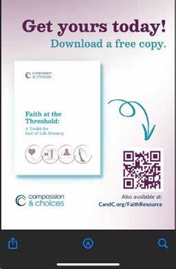 not talking about it is even scarier. I challenge you to visit www.compassionandchoices.org/eolc/finishstrong-tools/ and start TODAY! Begin 2026 with the peace of knowing you are prepared. As our elders advise, if you stay ready…you don’t have to get ready! n