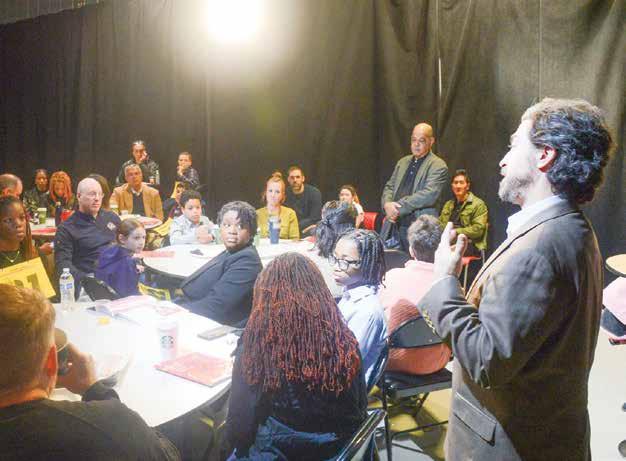 4 Jason Moore, coordinator of the 44th Annual Washington Informer Citywide Spelling Bee, encourages student participants and gives instructions. (Roy Lewis/The Washington Informer)