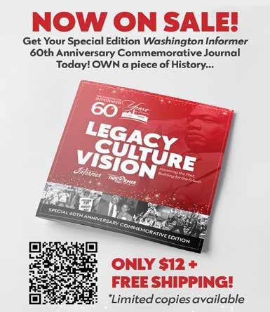 THE WASHINGTON INFORMER NEWSPAPER (ISSN#0741-9414) is published weekly on each Thursday. Periodicals postage paid at Washington, D.C. and additional mailing offices. News and advertising deadline is Monday prior to publication. Announcements must be received two weeks prior to event. Copyright 2016 by The Washington Informer. All rights reserved. POSTMASTER: Send change of addresses to The Washington Informer, 3117 Martin Luther King, Jr. Ave., S.E. Washington, D.C. 20032. No part of this publication may be reproduced without written permission from the publisher. The Informer Newspaper cannot guarantee the return of photographs. Subscription rates are $96 per year, two years $168. Papers will be received not more than a week after publication. Make checks payable to: