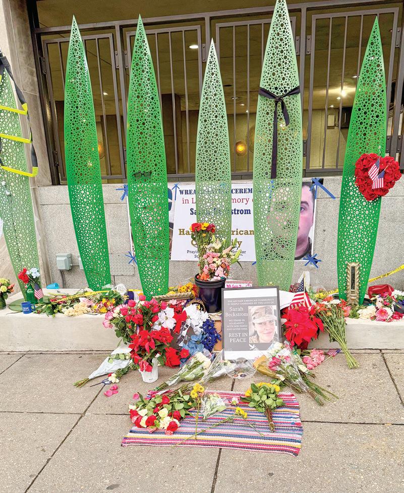 5 People are taking to Farragut West in Northwest, D.C. to remember National Guardsmen Sarah Beckstrom and Andrew Wolfe, who were shot on Nov. 26. The following day, President Donald Trump confirmed Beckstrom died from her injuries. (Austin Cooper/The Washington Informer)