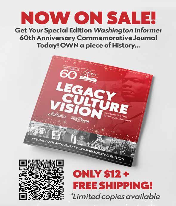 THE WASHINGTON INFORMER NEWSPAPER (ISSN#0741-9414) is published weekly on each Thursday. Periodicals postage paid at Washington, D.C. and additional mailing offices. News and advertising deadline is Monday prior to publication. Announcements must be received two weeks prior to event. Copyright 2016 by The Washington Informer. All rights reserved. POSTMASTER: Send change of addresses to The Washington Informer, 3117 Martin Luther King, Jr. Ave., S.E. Washington, D.C. 20032. No part of this publication may be reproduced without written permission from the publisher. The Informer Newspaper cannot guarantee the return of photographs. Subscription rates are $55 per year, two years $70. Papers will be received not more than a week after publication. Make checks payable to: