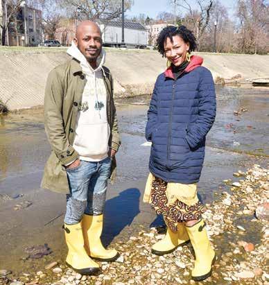 5 Ronnie Webb, director of The Green Scheme, stands in Oxon Run Creek with Jaren Hill Lockridge, the director of The Well.