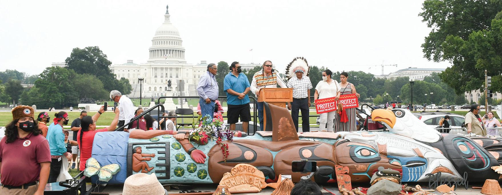 5Native American leaders at a Totem Pole rally on the National Mall in 2021, urging President Joe Biden to protect sacred Indigenous sites. While Indigenous Peoples’ Day honors the rich and resilient history of Native Americans, D.C education leaders have expanded curriculum about Indigenous communities, cultures and their contributions. (WI File Photo/Roy Lewis)