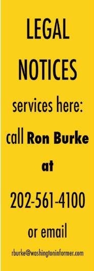 THE WASHINGTON INFORMER NEWSPAPER (ISSN#0741-9414) is pub lished weekly on each Thursday. Periodi cals postage paid at Washington, D.C. and additional mailing offices. News and ad vertising deadline is Monday prior to pub lication. Announcements must be received two weeks prior to event. Copyright 2016 by The Washington Informer. All rights reserved. POSTMASTER: Send change of addresses to The Washington Inform er, 3117 Martin Luther King, Jr. Ave., S.E. Washington, D.C. 20032. No part of this publication may be reproduced without written permission from the publisher. The Informer Newspaper cannot guarantee the return of photographs. Subscription rates are $55 per year, two years $70. Papers will be received not more than a week after pub lication. Make checks payable to: