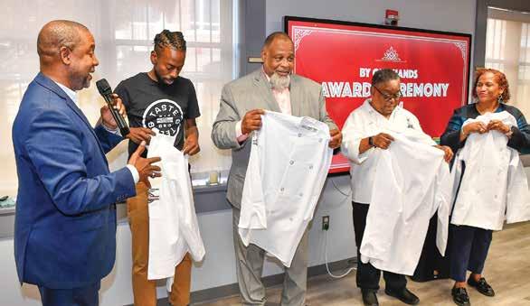Community leaders, youth and local entrepreneurs, including the organization’s founder Marcellus Queen and D.C. Black Broadway’s Dr. Lovail Long, celebrate students after completing programmin g through Representation for the Bottom, which trained young people to be youth violence prevention ambassadors. (Cleveland