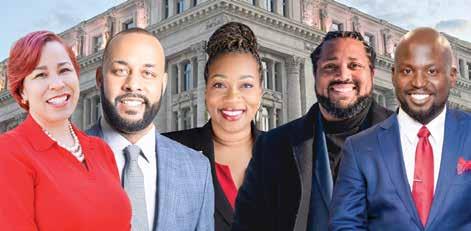 3 (L-R) D’yana Forester, Kevin B. Chavous, Candace Tiana Nelson, Greg Jackson, and U.S. Shadow Rep. Dr. Oye Owolewa, count among the nine Democratic at large D.C. Council candidates fighting for the seat currently occupied by D.C. Councilmember Anita Bonds. (WI Photo Staff Graphic)